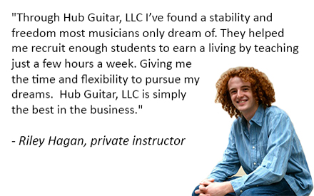 Welcome to Hub Guitar, LLC. Hub Guitar helps you on your journey to become a great guitar teacher by providing you with all of the tools you need to attract and retain students and give them a great learning experience. Get your teaching career off of the ground and start earning a living doing something you love—today!